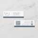 Elegant Monogram Wreath Neutral Slate Gray Mini Business Card with Slogan... The front of our unique slate gray "mini" business card features an elegant botanical wreath bordering your two monogram initials in slate gray ink on a white background. Your name and title (or company name) appear to the right of the monogram logo. A neutral slate rectangle bordering the bottom of the business card gives an authoritative structure to balance the delicate leafy wreath. On back of the card are your phone number, social media contact info, website address and QR code linking to additional information... as well as your business motto or tagline. Example text currently shows "Always take the high road" in slate gray script typography. If you prefer, you can delete the text for the motto. All text and the QR code can be easily revised on the personalization template.