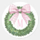 Monogram Wreath with Pink Gingham Bow Classic Round Sticker