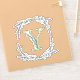 A romantic and elegant design with monogrammed letter framed by eucalyptus and lavender painted in watercolor.