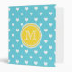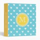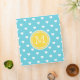 Pretty personalized binder with Monogram on front, your words on the spine. With white hearts on a blue and yellow background.