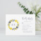 Monogram Yellow Gray Floral Wreath Wedding RSVP Card