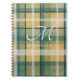 Personalize this notebook with your initials. Monogram Yellow Green Plaid Spiral Notebook