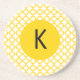 Monogram Yellow Quatrefoil Pattern Sandstone Coaster
