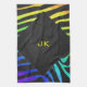 Monogram Zebra Black and Rainbow Print Kitchen Towel