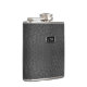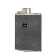 Handsome flask with graphics of a black ostrich leather look, with a metal look plaque, on the front. Personalize the three letter monogram, on the plaque, to suit your needs. Great gift idea for any guy and especially great as a wedding party gift for groomsmen.