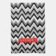 Elegant black white and gray tones chevron pattern. Customizable monogram and red accents.