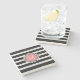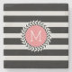 Monogramed Black & White Stripes & White Wreath Stone Coaster
