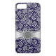 Monogramed Blue & Metallic Silver Floral Damasks Case-Mate iPhone Case