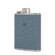 Handsome flask with graphics of a blue ostrich leather look. Personalize the three letter monogram, on the front to suit your needs. Great gift idea for any guy and especially great as a wedding party gift for groomsmen.
