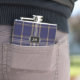 Masculine drinking flask with the traditional regency blue, tan, red and white clan Baker tartan plaid pattern. Personalize the two letter monogram, on the faux metal looking plaque, to suit your needs. Great gift idea for any guy and especially great as a wedding party gift for groomsmen.