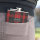 Handsome flask with the classic and red, black, and white clan Cunningham tartan plaid pattern. Personalize the three letter monogram, on the metal looking plaque, to suit your needs. Great gift idea for any guy and especially great as a wedding party gift for groomsmen.