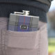 Handsome flask with the classic purple, gray, black, and red clan Kinnaird tartan plaid pattern. Personalize the three letter monogram, on the metal looking plaque, to suit your needs. Great gift idea for any guy and especially great as a wedding party gift for groomsmen.