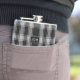 Handsome flask with the classic black and white clan MacPhee tartan plaid pattern. Personalize the three letter monogram, on the metal looking plaque, to suit your needs. Great gift idea for any guy and especially great as a wedding party gift for groomsmen.