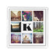 Eight square photographs frame a single letter monogram in graphic black and white for a home decor accessory or gift that's sure to please.
