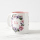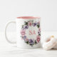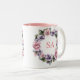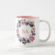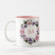 Pretty hand-painted garlands of flowers mug featuring a beautiful circular wreath of flowers in pink and purple with green leaves in between. You can customize this design with your monograms, initials or name. Click Customize It to change text fonts and colors to create your own unique one of a kind design. Makes a perfect gift for a gardener, naturalist, or anyone who loves flowers and nature.