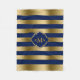 Monogramed Gold & Blue Stripes Geometric Pattern Fleece Blanket