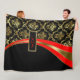 Monogramed Gold Red & Black Floral Damask 2 Fleece Blanket