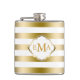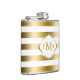 Monogramed Gold Stripes Geometric Pattern Hip Flask