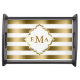 Monogramed Gold Stripes Geometric Pattern Serving Tray