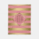 Monogramed Gold Stripes & Pink Geometric Pattern Fleece Blanket