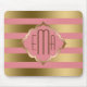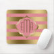 Monogramed Gold Stripes & Pink Geometric Pattern Mouse Pad