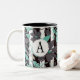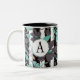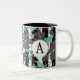 Monogramed Gray Teal Floral Stripe Pattern Two-Tone Coffee Mug