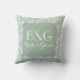 Monogramed Green Linen And White Lace Frame Throw Pillow