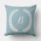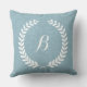 Monogramed Light Blue Linen And White Wreath Throw Pillow