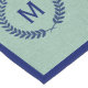 Monogramed Mint-Green Faux Linen & Blue Wreath Short Table Runner
