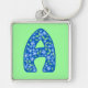 Monogrammed A Blue Floral Pattern Keychain