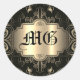 Monogrammed Abstract Floral Black And Gold Classic Round Sticker
