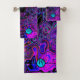 Personalize the Monogram on this Cool Groovy Bath Towels Set that features a Trippy Black, Purple and Magenta Retro Liquid Swirl with Marbled Hot Pink, Orange, Aqua and Purple Accents. The result is a cool, psychedelic, groovy, abstract design that you will love!