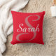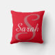 Monogrammed and personalized red, dusty rose and white throw pillow. Large dusty rose initial monogram in black and full name in white on a bright red background. A very classy housewarming, Mother's Day or ladies' birthday gift. Great accent for couches or chairs. Design on front and back.