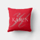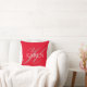 Monogrammed and personalized red, dusty rose and white throw pillow. Large dusty rose initial monogram in black and full name in white on a bright red background. A very classy housewarming, Mother's Day or ladies' birthday gift. Great accent for couches or chairs. Design on front and back.