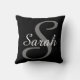 Monogrammed and personalized black gray and white throw pillow. Large gray initial monogram in gray and full name in white on a black background. A very classy housewarming, Mother's Day or ladies' birthday gift. Great accent for couches or chairs. Design on front and back.