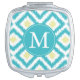 Monogrammed Aqua Lemon Diamond Ikat Pattern Vanity Mirror