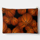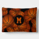 This basketball themed zipper pouch features a random pattern of varied size basketballs turned every which way on a black background - customize with the basketball player's monogram - by katz_d_zynes