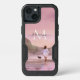 This dusky pink phone case features a sunset scene and a woman and dog running along a beach. Customize your Google Pixel Otterbox case with your name and monogram in the "Personalize It" section. This would make a lovely gift for a best friend.