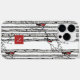This modern monogrammed winter and holiday season phone case features hand-drawn birch trees with red Cardinal birds perched on branches in black ink, against an elegant white background. Personalize with your monogram.