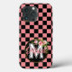 Monogrammed black and PINK Checkered Flower Case-Mate iPhone Case