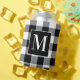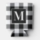 Monogrammed Black and White Buffalo Plaid Can Cooler