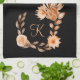 Monogrammed Black Brown and Peach Floral Kitchen Towel