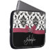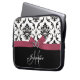 Monogrammed Black Damask Pink Bow Diamond Hearts Laptop Sleeve