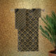 Set of three monogrammed towels in a black and gold color scheme. Art Deco-inspired bathroom decor.