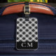Elevate your travel game with our monogrammed luggage tag featuring your initials on a stylish black plaid design. This simple and professional accessory is perfect for the modern traveler, adding a touch of personality to your bags. The back offers ample space for your contact information, ensuring your luggage is easily identifiable.