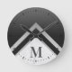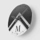Monogrammed Black Silver Chevron Marble Round Clock
