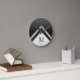 This modern round wall clock features a geometric design with a customizable monogram in a white marble and silver frame on a black ombre background.