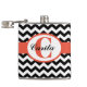 A custom 6 oz vinyl wrapped flask with a black and white chevron pattern. You can personalize this product by adding your own initial and name to the center of the monogram logo.