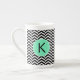 Monogrammed Black, White Sea Foam Chevron Pattern Bone China Mug