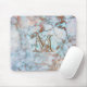Monogrammed Blue And Gray Marble Stone Mouse Pad
